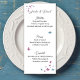 Celebre la temporada de amor con esta carta de platos muy bien elaborada, adornada con delicadas mariposas de verano. Diseñado en suaves tonos pastel, evoca el encanto de un fiesta de jardín iluminado por el sol o de una romántica velada al aire libre. Perfecto para bodas de primavera y verano, recepciones al jardín o celebraciones con temática de mariposas.