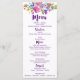 Esta tarjeta de menú monograma con flores moradas y rosas es perfecta para un boda de temática floral. El diseño cuenta con magenta brillante, flores rosas, púrpura de ciruela y azul, y un bonito y audaz tipo de letra de guión. Personalice el respaldo de la corona floral con las iniciales de la novia y el novio en un hermoso monograma. Diseñado con cuidado por Miriam en Fresh & Yummy Paperie. Por favor, contáctame con cualquier personalización de diseño que necesite. Para coordinar artículos, por favor visite mi tienda Zazzle: