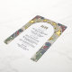 Podrá disfrutar de su experiencia gastronómica con nuestra impresionante carta, que incluye las buganvillas azul marino y detalles ornamentales inspirados en el icónico estilo Art Nouveau de Alphonse Mucha. Impreso con verdadero Relieve metalizado, esta carta de menú es una auténtica obra maestra que añade elegancia y sofisticación a cualquier evento. Los detalles intrincados que rodean la información del menú en esta tarjeta, como los marcos ornamentales y los elementos decorativos, son un guiño al estilo de Mucha y crean un diseño visualmente llamativo e inolvidable. Diseñado a partir de materiales de alta calidad, puede ser personalizado para adaptarse a sus necesidades y preferencias únicas. Desde cenas formales hasta reuniones íntimas, nuestra carta es la manera perfecta de añadir un toque de glamour y arte a su experiencia gastronómica. Entonces, ¿por qué conformarse con un menú básico cuando se puede tener una obra de arte? Elija nuestra tarjeta de menú inspirada en Alphonse Mucha, impresa con un verdadero Relieve metalizado, para impresionar a sus invitados y hacer su evento inolvidable.