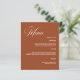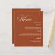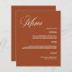 Fondo de color naranja quemado. Personalice y agregue sus nombres, fecha y menú. Texto blanco. 1 hoja = 1 borde impreso del menú a borde.