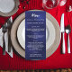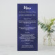 carta fiesta para la cena de los navidades. Personalice y agregue un nombre/evento, fecha y menú. Un fondo azul oscuro, azul marino, texto blanco. El color azul es desigual.