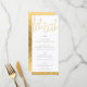Personalizar el menú de tu evento con estas hermosas tarjetas de menú! Cada tarjeta tiene un diseño de pincel dorado pintado a mano con letras cursivas modernas en la parte delantera y un fondo de Relieve metalizado con un patrón art deco en la parte trasera. Puedes personalizar cada detalle de tu menú. Esta tarjeta seguramente será un factor de wow en la configuración del lugar de tu mesa.