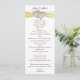 Acentúa tu decoración añadiendo una carta. Los clientes esperan con impaciencia la entrada de la novia y del novio o la presentación del cliente de honor. En su entorno, una tarjeta del menú aporta un toque agradable. Personalice y cree su menú agregando y cambiando el texto en los campos proporcionados. Puede cambiar el estilo de fuente, el tamaño y el color, así como el tipo de papel.