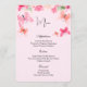 Esta plantilla de la tarjeta de menú se muestra en el papel básico con una bonita mariposa impresa en un color de fondo rosa claro. Script y texto estándar en negro. Personalizar los elementos de menú al suyo haciendo clic en el botón personalizar, busque a la derecha y busque los cuadros apropiados para cambiar a su información. Deseándote los mejores deseos para tu Día de la Boda. Imagen de stock