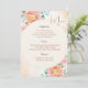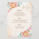Esta plantilla de tarjeta de menú es perfecta para cualquier ocasión especial que tengas y se muestra en una hermosa impresión floral en colores rosa y melocotón, con texto en tonos marrones.