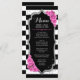 Tarjeta de menú. Diseño rosa blanco negro elegante con falso brillo plateado. El diseño floral presenta rayas negras y blancas y rosas rosadas. Perfecto para una fiesta elegante.