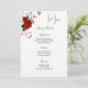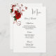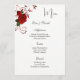 Esta plantilla de la tarjeta de menú se muestra en papel básico en blanco con un bonito diseño de impresión rosa roja. Guión y texto estándar en negro. Personalizar los nombres y elementos de menú en el suyo haciendo clic en el botón personalizar, busque a la derecha y busque los cuadros apropiados para cambiar a su información. Deseándote los mejores deseos para tu Día de la Boda.