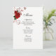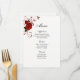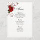 La tarjeta de menú se muestra en el papel básico en blanco con un bonito diseño de rosa rojo. Guión y texto estándar en color negro. Personalizar los elementos del menú haciendo clic en el botón personalizar, busque a la derecha y busque los cuadros apropiados para cambiar a su información.