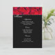 La tarjeta de menú está en negro con una foto impresa de rosas rojas y un delicado recorte de borde de puntos pin con guión y texto estándar en blanco. Personalizar de elementos de menú haciendo clic en el botón de edición personalizar, busque a la derecha y busque los cuadros apropiados para cambiar a su información. Deseándote los mejores deseos para tu Día de la Boda.