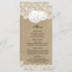 Este menú casero es la combinación perfecta entre lo tradicional y lo moderno. El fondo burlap es perfecto para un boda de temática rústica o vintage y el acento de encaje le da un toque clásico y romántico. Coordenadas con colección completa de invitaciones coincidentes, Guardar las fechas, tarjetas RSVP, franqueo de personalizados y más! ¡Envíame un correo electrónico por colores personalizados! NOTA - Esta es una imagen de alta calidad de burlap, lace & ribbon; esta invitación no contiene burlap, lace ni ribbon reales. ¡Gracias!