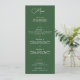 Tarjeta de menú verde oscuro para acompañar la suite de invitación Wrightsville Manor, inspirada en la naturaleza y encantadora del sur.