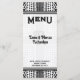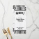 Tema: Diseño decorativo en negro, blanco y plateado, ornamentado. Tarjeta de menú de cena o de almuerzo de recepción de boda personalizable a doble cara. Un lado de la plantilla de la tarjeta está diseñado con un estilo elegante para los nombres de los novios, las fechas de la boda y el monograma / iniciales. Personalice con la información de su evento especial. El estilo de diseño alternativo versátil hace que esta tarjeta sea adecuada para cualquier otra ocasión especial, por ejemplo: cena, cumpleaños número 50, cenas de ensayo o aniversario de boda.