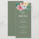 Añade un toque de encanto isleño a las mesas de recepción con esta carta boda de hibisco tropical. Con flores de hibisco de color acuático, hojas de palma y un fondo de sabio suave, muestra muy bien las opciones de comida para una celebración de la costa o de la isla.