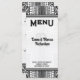Tema: Diseño decorativo en negro, blanco y plateado, ornamentado. Tarjeta de menú de cena o almuerzo de recepción de boda personalizable a doble cara. Un lado de la plantilla de la tarjeta está diseñado con un estilo elegante para los nombres de los novios, las fechas de la boda y el monograma o iniciales. Personalice con la información de su evento especial. El estilo de diseño alternativo versátil hace que esta tarjeta sea adecuada para cualquier otra ocasión especial, por ejemplo: cena, 50 cumpleaños, cenas de ensayo o aniversario de boda.