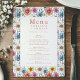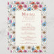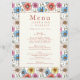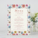 Un toque floral encantador para la recepción de tu boda. Carta de boda de flores silvestres de estilo vintage con un colorido borde floral a mano que rodea los detalles del menú. Este diseño es perfecto para bodas de temática jardín, rústica o botánica. Una hermosa manera de mostrar tu comida boda con estilo.