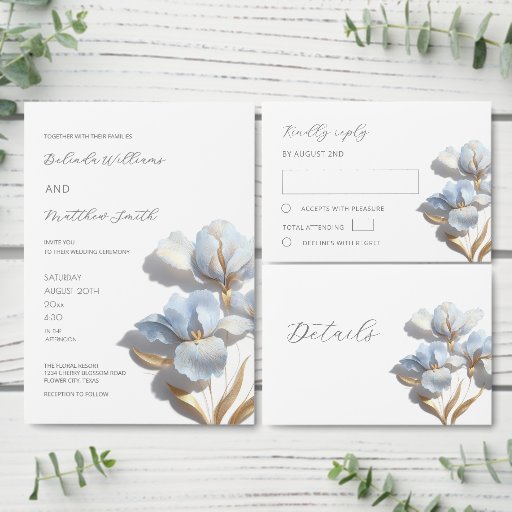 Stylized Lillies Blue Gold WeddingDiseñado por Nina Baydur