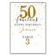 Esta tipografía de escritura negra y dorada, número de mesa de cumpleaños con estrellas doradas y confeti 50 y fabuloso se puede personalizar con la información de su celebración de cumpleaños. Diseñado por Thisisnotme©