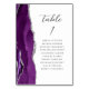 El borde izquierdo de esta elegante y moderna tarjeta boda número de mesa cuenta con un borde de agate color morado con un falso purpurina plateado. La palabra "tabla" aparece en el guión de escritura a mano gris carbón en un fondo blanco. Agregue los nombres de los invitados que se asignen a cada mesa.