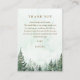 Una tarjeta de agradecimiento de recepción de boda de bosque de pinos con acuarela elegante, personalizada con un mensaje especial y los nombres de la novia y el novio. Diseñada por Thisisnotme©