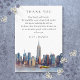Una elegante tarjeta de agradecimiento de recepción de boda en acuarela en Nueva York, personalizada con un mensaje especial y los nombres de la novia y el novio. Diseñada por Thisisnotme©