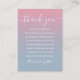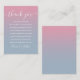 Un elegante conjunto de tarjetas de agradecimiento para una celebración de boda. Personalizado con su mensaje especial de agradecimiento en tipografía elegante sobre un fondo con efecto ombre rosa y azul suave. Puede personalizar el fondo con el color de su tema de boda favorito. Un especial recuerdo de agradecimiento para sus invitados. Diseñado por Thisisnotme