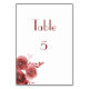 Aquí se ilustra una hermosa tarjeta de número de mesa con la temática acuarela. Este diseño presenta un fondo blanco con un bonito ilustracion de flores de color burdeos. El texto tiene un precioso tipo de letra borgoña. Muy fácil de personalizar, pide el tuyo hoy.