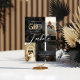 Celebre 50 años de amor infinito con nuestro elegante diseño de número de mesa para aniversario de bodas de oro Then and Now Photo Collage. Diseñado para honrar un hito dorado o cualquier otro año de celebración de bodas. Este diseño presenta un símbolo de infinito dorado falso con sus fotos "entonces y ahora" resaltadas del collage de fotos de fondo, colocado sobre una suave capa negra para darle profundidad y contraste. Personalice con nombres, año de aniversario de bodas y número de mesa para crear una invitación atemporal que refleje toda una vida de recuerdos. Perfecto para celebraciones de aniversario de bodas de oro, renovación de votos o reuniones íntimas. Diseño de Moodthology Papery.