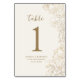 Sorpresa botánica de oro marfil crema número de mesa de celebración de aniversario de bodas número 50. El diseño moderno minimalista presenta acentos botánicos y tipografía de fuente de escritura. Tarjeta floral simple perfecta para una fiesta elegante.