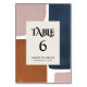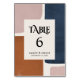 Resumen de óxido, marina + rosa moderno número de mesa boda contemporáneo. Diseño gráfico pintado a mano. Texto del guión y tipografía en negrita.