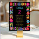 Guíe a sus huéspedes con un estilo vibrante con esta moderna tarjeta de mesa de Boda mexicana. Con un colorido marco floral inspirado en el arte folclórico tradicional mexicano, audaces florecientes en rojo, amarillo, rosa y turquesa contra un rico fondo negro. El contraste intenso asegura que el número de la mesa sea fácil de leer, añadiendo un toque festivo y elegante a la decoración de la recepción. Perfecto para parejas que buscan infundir su celebración con encanto cultural, color alegre y sofisticación moderna.
