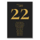 Esta elegante tarjeta de asignación para bodas es intemporal, su diseño es sencillo y minimalista. El diseño incluye un número de tabla boda de personalizable, nombres de invitados en tipografía de oro de lujo. Siempre elegante y sofisticado fondo negro de carbón vegetal.