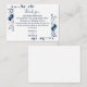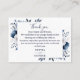 Una elegante tarjeta de agradecimiento de recepción de boda floral azul marino y blanco, personalizada con un mensaje especial y los nombres de la novia y el novio. Diseñada por Thisisnotme©