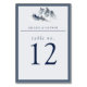 Elementos: Motivo de montaña brumosa en acuarela con árboles y nieve. Fuentes serif elegantes compensadas con un borde simple pero refinado. Colores: azul, blanco, gris, pizarra, azul polvoriento, blanco nieve, azul real. Temas: simple, elegante, moderno, rústico, boda al aire libre, boda en la montaña, únete a nosotros en las montañas, único, campo, après-ski, lodge de montaña. Colección: Colección de Boda con Borde Elegante Azul Gris Blanco Montaña Brumosa. Tipo de producto: Tarjeta de mesa