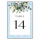Tarjeta De Mesa Azul y Dorado Elegante Floral Rústico Acuarela