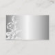 © 2018 Socialite Designs. Bella esquina gira y florece la carta de la mesa en azul real y gris plateado, con un fondo plateado. Un diseño elegante para cualquier celebración a cualquier hora del año. El diseño de la parte posterior se puso a disposición para que pueda agregar información adicional.