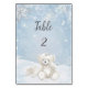 Guide your guests with these elegant "Baby, It's Cold Outside" table number signs. The design features the charming teddy bear and cozy baby boots in a serene, snowy winter wonderland setting, framed by delicate snowflakes. These signs add a personalized, functional, and gender-neutral touch of classic elegance to your baby shower tables.
