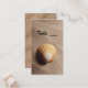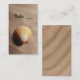 Playa de arena con una tarjeta de boda de concha de vieiras.