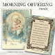 Este es un hermoso diseño religioso vintage personalizado de Nuestra Señora de la Salvación y el Sagrado Corazón de Jesús. En la parte trasera está la tradicional oración de la Mañana Católica.