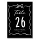 Elegant retro theme wedding table number card featuring a hand drawn bow frame.