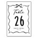 Elegant retro theme wedding table number card featuring a hand drawn bow frame.