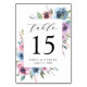 Elegantes tarjetas de números de mesas florales con detalles bodas enmarcadas con flores de color morado, malva y azul con hojas verdes exuberantes. El diseño se repite en la parte posterior. Diseñado para coordinar con nuestra colección de bodas de Blooms de Medianoche.