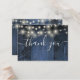 Una elegante cuerda de madera rústica azul boda luces de madera de granero gracias tarjeta de recepción, personalizada con un mensaje especial y los nombres de la novia y del novio. Diseñado por Thisisnotme©