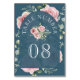 Elegant blush pink wedding table card featuring beautiful flowers.