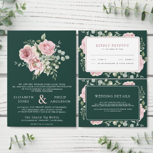 Blush Pink Floral Eucalyptus Emerald Green WeddingDiseñado por Shabbir D