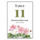Disfrute de la combinación de arte y función con nuestros números de tabla bodas. La obra de arte se inspira en un ilustracion floral acuático de japonés suave color rosa, los suaves colores de estas flores, rodeados de un follaje verde oscuro, son un espectáculo a contemplar. Las obras de arte se funden perfectamente con un fondo blanco puro que aporta un toque clásico. ¿Quieres traer un toque personal? Visite Zazzle y personalizar estos números de tabla con sus propios textos. Déjenlos llevar un fragmento de tu historia de amor en medio de los ajustes de la mesa.