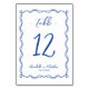 Mano Azul Dibujó El Círculo Número De Mesa De Boda De Inspiración Europea. Esta tarjeta está decorada con una sofisticada paleta azul y blanco inspirada en la estética francesa, italiana y europea. Cuenta con un bonito giro a mano y un borde de bucle que le confieren un toque divertido y refinado a su evento. El marco caprichoso resalta suavemente el número de tabla, combinado con una mezcla de guiones y fuentes manuscritas para un diseño elegante y personalizado. Perfecto para bodas, duchas de novias, fiestas de té y cenas de ensayo, este diseño mezcla sofisticación fresca con un ambiente alegre. Personalizable completo, puede ajustar los colores, el texto y el diseño para que coincidan con el tema boda. Una hermosa elección para parejas que buscan un detalle único y elegante que añade encanto y personalidad a su día especial.