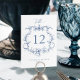 Tarjeta De Mesa Boda azul Escudo floral barroco victoriano azul