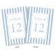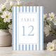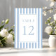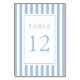 Número de mesa de boda azul polvo rayado elegante.