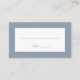 Una simple tarjeta de visita sobre un polvoriento fondo azul. El elegante tipo de letra del guión boda blanco utilizado complementa la configuración formal. Esto es parte de nuestra polvorienta colección de bodas azules, tómese un momento y busque más elementos coincidentes y coordinados. Escribirás el nombre del invitado a mano.