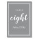 Este diseño fue creado para pequeñas celebraciones íntimas de bodas. Sencillo, minimalista y elegante El diseño de Wedding Table Number EIGHT presenta un diseño contemporáneo con un borde doble de marco en blanco inmaculado sobre un fondo gris de última moda. El diseño de la moda ofrece una sofisticación atemporal y moderna. Personalice el diseño de la tabla boda con los detalles de su boda en letras blancas y guiones nítidos. La parte posterior de la tarjeta es un duplicado de la parte delantera. Solicite uno por cada tabla con los números de tabla individuales. Las mesas ONE a TEN están diseñadas individualmente y están disponibles en mi tienda InvitationSuites en Zazzle. Si necesita números adicionales, por favor envíenos un correo electrónico a InvitationSuites@gmail.com.